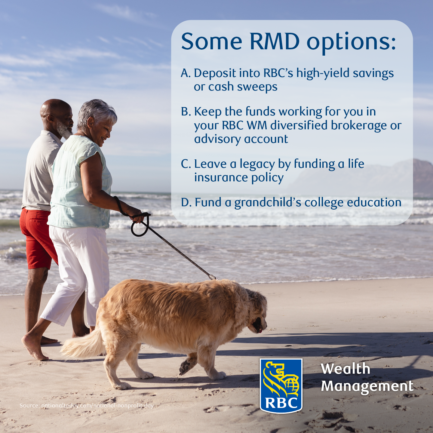 If you’re 73 or older and haven’t taken your required minimum distributions (RMDs) from your IRAs yet this year, let’s talk. You have options, including competitive yields for your cash as part of your wealth plan. The annual deadline is December 31.